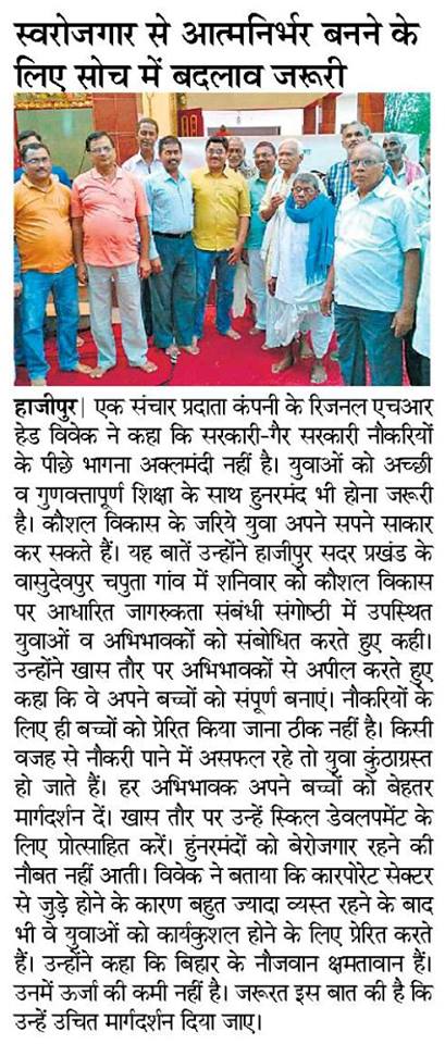 उत्तर भारत एयरसेल के वरिष्ठ मानव संसाधन विकास अधिकारी विवेक कुमार से युवाओं ने जानें स्वरोजगार के तरीके