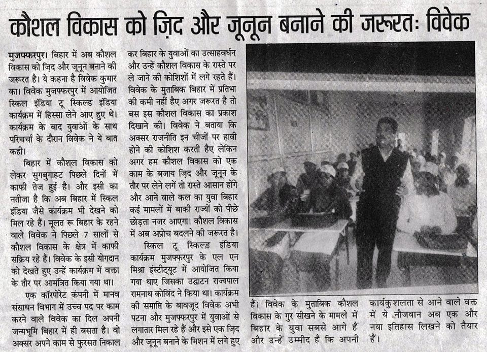 विवेक ने मुजफ्फरपुर में आयोजित स्किल इंडिया टू स्किल्ड इंडिया कार्यक्रम में कहा कि कौशल विकास को ज़िद और जूनून बनाने की जरुरत है |
