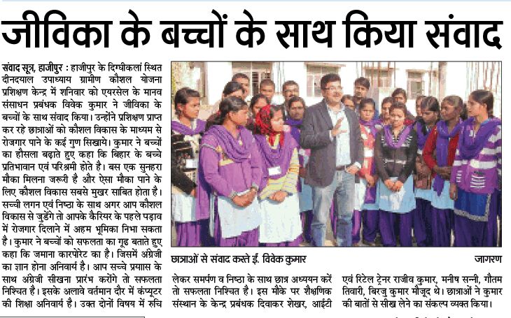 हाजीपुर की दिग्धीकलां स्थित DDUGKY के प्रशिक्षण केंद्र में एयरसेल के एचआर हेड विवेक कुमार ने जीविका के बच्चों के साथ संवाद किया |